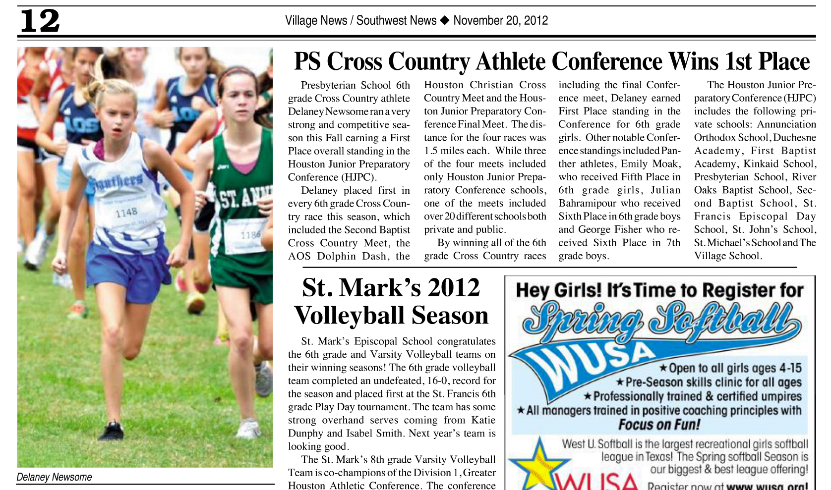 The latest issue of The Southwest News has an article about Delaney’s cross country season.